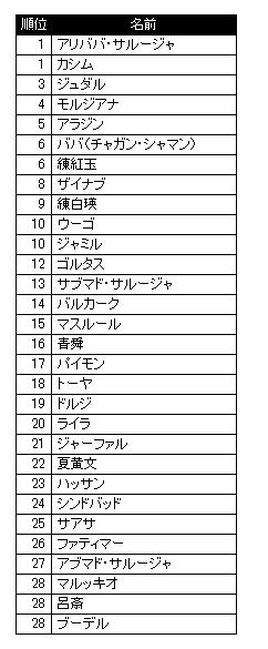 個人的に笑えるのは主要キャラでシンドバッドが一番順位が下っていう…